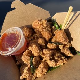 Three words: Savory Soy Wings. Man, those things are so juicy and flavorful. It is my favorite thing on the menu right now! We usually get the popcorn chicken and fries (which I love!) and they usually come out super fresh. My kids enjoy the oreo milkshake and thai tea with boba. My fave drink is the black sugar flame milk tea with boba because I love creme brulee! On busy days, it can get crowded inside when ordering but they have a window outside to help with traffic. And you might have to wait for your order a bit, but it's totally worth it. Super friendly staff. Clean on the inside. Easy to get to. 10/10 recommend!